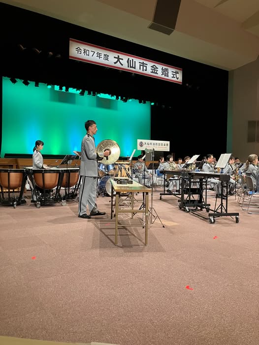 開式に先立ち、県内唯一の消防団音楽隊として演奏活動を行っている大仙市消防団音楽隊の演奏会がありました。素晴らしかった。制服もカッコイイ!
