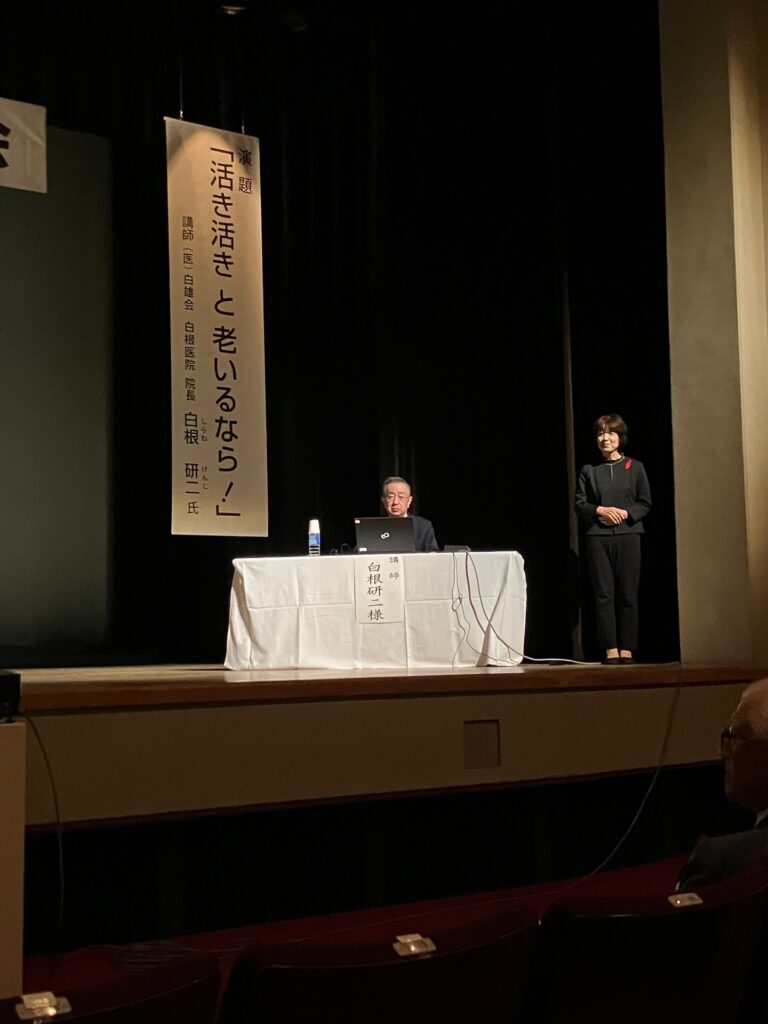 アンコールはお決まりの「いざないの街」 あの大曲の花火のフィナーレの歌です♪最後は、秋田市の白根医院院長、白根研二 氏による「活き活きと老いるなら!」 と題した記念講演でした。要介護となる原因として一番高いのでが認知症です。また、生活習慣病の予防のことも教えていただきました。